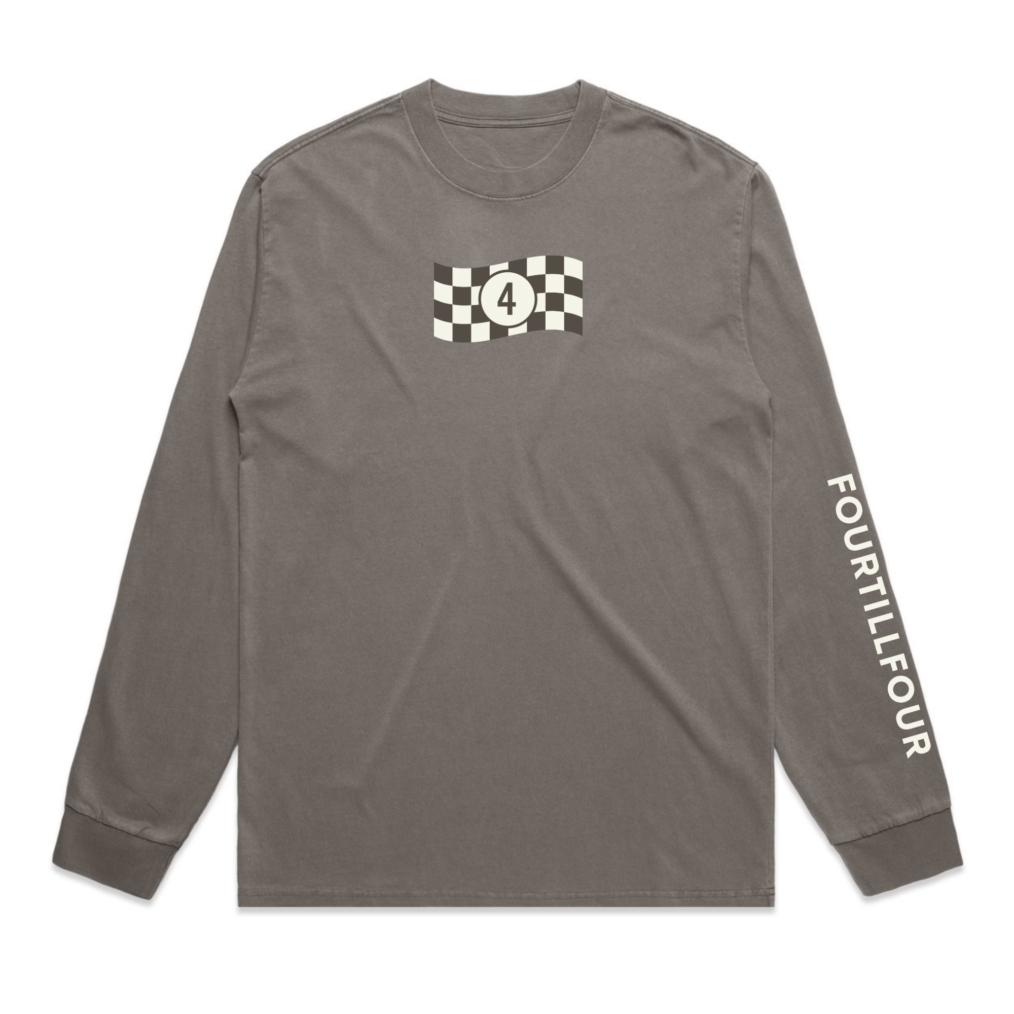 The 4 Flag Long Sleeve T-Shirt, available in faded grey with a grey and white print.