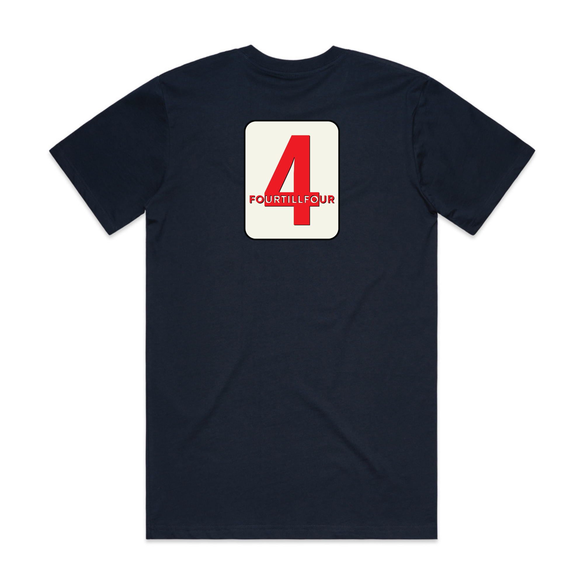 The FTF Badge T-Shirt, available in Navy and Coal with a multi-color print.